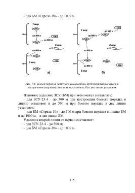Рис. 7.3. Боевой порядок зенитного самоходного артиллерийского взвода в