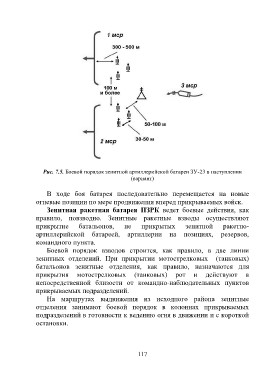 Рис. 7.5. Боевой порядок зенитной артиллерийской батареи ЗУ-23 в наступлении