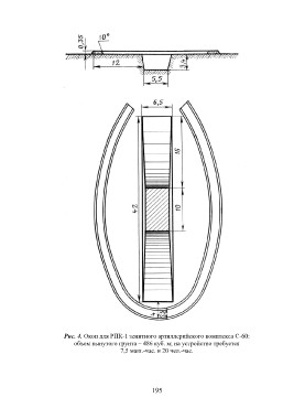 Рис. 4. Окоп для РПК-1 зенитного артиллерийского комплекса С-60: объем вынутого грунта – 486 куб. м; на устройство требуется 7,5 маш.-час. и 20 чел.-час. 195