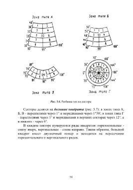 Секторы делятся на большие квадраты (рис. 5.7): в зонах типа А,