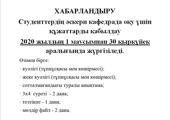 КАЗАХСКИЙ НАЦИОНАЛЬНЫЙ УНИВЕРСИТЕТ