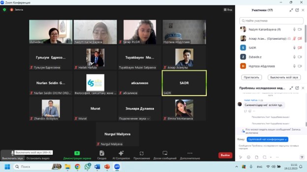 19 декабря 2023 года состоялся научный семинар на тему «Проблемы изучения медицины кочевых народов», организованный совместно научно-исследовательским центром Казахского национального университета имени аль-Фараби «Письменные памятники и духовное наследие» и Научным комитетом РМЦ «Ғылым Ордасы» Министерства науки и высшего образования. В научном онлайн-семинаре приняли участие ученые и исследователи из Турции, Индии, Ирана, Польши совместно с научно-исследовательским центром «Письменные памятники и духовное наследие» Казахского национального университета имени аль-Фараби и «Ғылым Ордасы».
