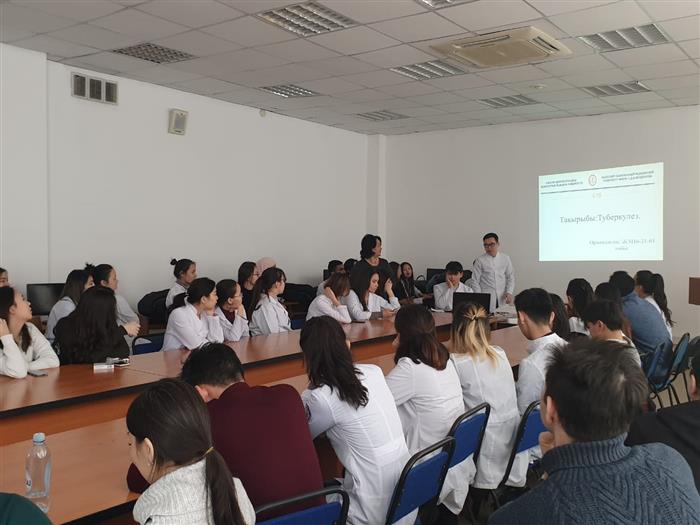 18.02.2020 кафедра химии и технологии органических веществ, природных соединений и полимеров проводил мероприятие воспитательного характера на тему «Туберкулез и инфекционные заболевания, передающиеся половым путем». На встречу были приглашены к.м.н., доценты Национального медицинского университета им. С. Асфендиярова Умешова К.А, Джумабекова А.Т. и студенты этого университета.