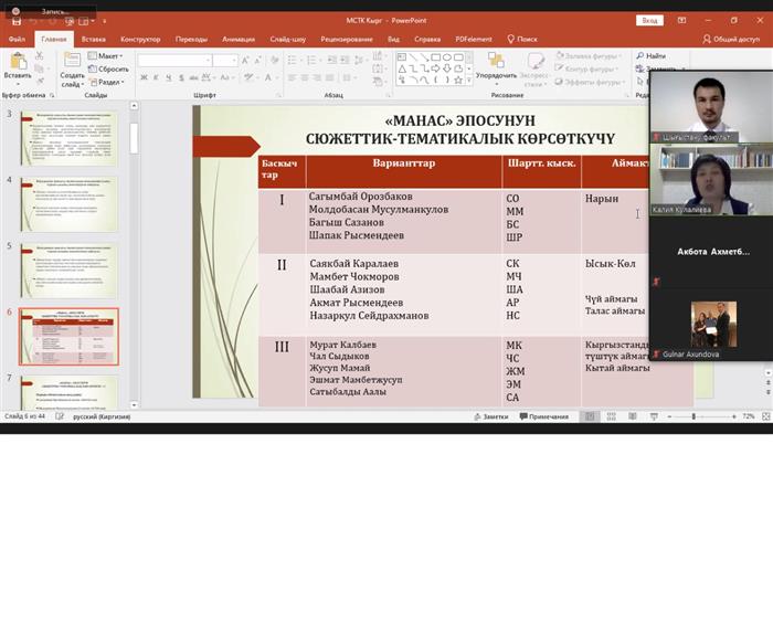 Онлайн-семинар к.ф.н. Калии Кулалиевой на тему «Сюжетно-тематический указатель І эпоса Манас ».