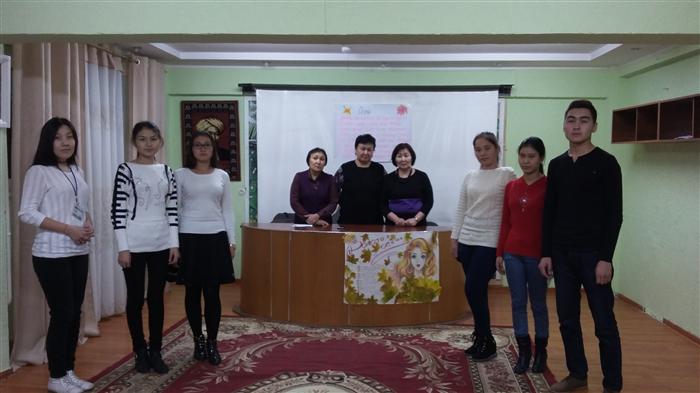 27 октября 2015 г. в Доме студентов № 17 в рамках реализации проекта «100 книг» проведено мероприятие «Золотая осень в русской поэзии 19-20 веков» со студентами 1 курса к/о. Ответственные: Мейрамгалиева Р.М., Кенжеева К.Т., Какишева Н.Т.