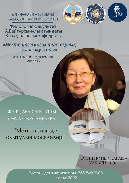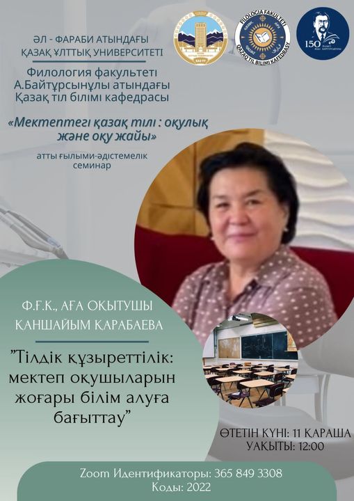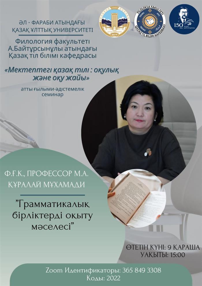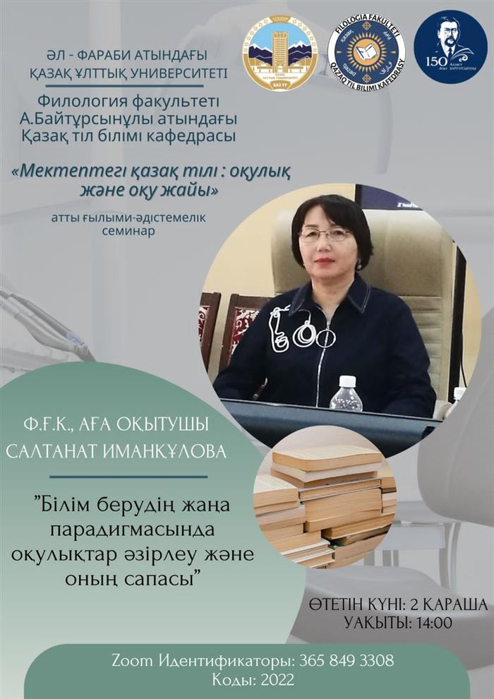 А.Байтұрсынұлы атындағы Қазақ тіл білімі кафедрасы 2022 жылдың 1-11 қараша аралығында «Мектептегі қазақ тілі: оқулық және оқу жайы» атты республикалық ғылыми-әдістемелік семинар ұйымдастырды. Семинарға еліміздің мектептерінен қатысқан мұғалімдерге кафедра оқытушылары мазмұнды дәріс оқыды.