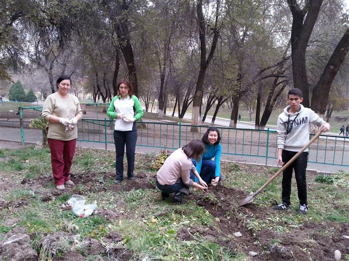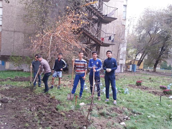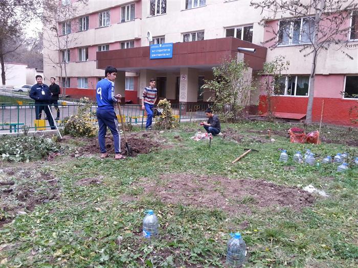 03.11.2016 года. Преподаватели кафедры в рамках проекта «Грин кампус» во дворе общежития №17 сажали цветы.
