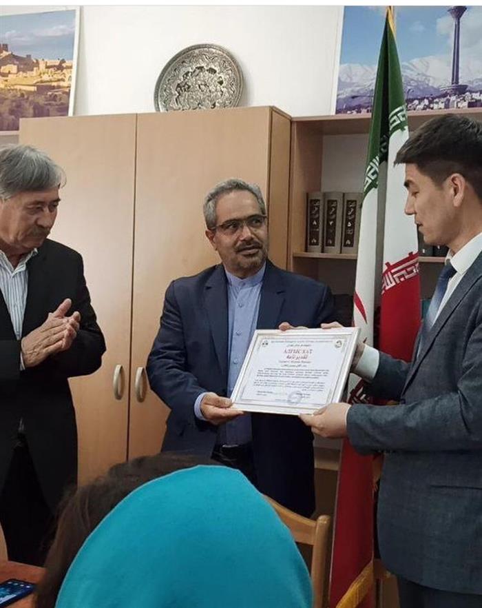 В круглом столе «Шахнаме Фирдауси и Казахская литература» участововал г-н Мухсин Фагани, Генеральный Консул Исламской Республики Иран в Алматы, и г-н Али Акбар Талеби Матин, советник по вопросам культуры Посольства Исламской Республики Иран в Республике Казахстан. В рамках данного литературно-культурного мероприятия Генеральный консул Исламской Республики Иран в Алматы г-н Мухсин Фагани передал в дар Центру иранистики ряд научной литературы. Эти книги – работы известных востоковедов, изданные Фондом Ибн Сины в России.