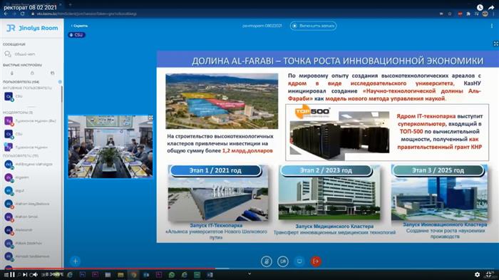 8 февраля 2021 года по сложившейся традиции заседание ректората прошло в открытом онлайн формате. Все сотрудники Казахского национального университета имени Аль-Фараби смогли увидеть открытое заседание в прямом эфире на YouTube-канале. Ректор КазНУ им.Аль-Фараби, д. т. н., профессор, академик НАН РК Мутанов Галымкаир Мутанович отчитался о своей деятельности за последние 10 лет. В ходе отчета были озвучены достижения университета за 10 лет. Также рассказал о проектах, которые будут выполнены в ближайшие годы. В ходе эфира ректор ответил на поставленные вопросы и предложения.