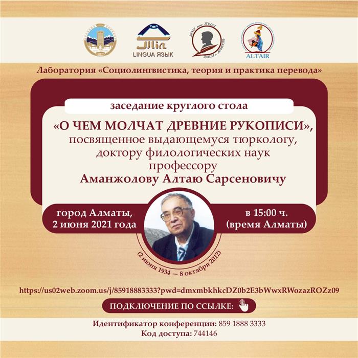 2 июня 2021 года состится заседание круглого стола, посвященное доктору филологических наук Аманатю Сарсеновичу Аманжолову.