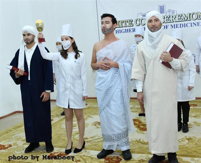 Из глубины веков для студентов звучали слова назидания от Аль-Фараби, Абу Али ибн-Сины, Гиппократа. Первокурсники дали клятву хранить традиции университета, верность профессии врача, почитать учителей и стать настоящими профессионалами в сфере здравоохранения.
