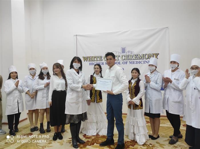 С поздравительной речью и напутственными словами к студентам выступили декан факультета медицины и здравоохранения Калматаева Ж.А., директор Высшей школы медицины Исаева Р.Б., тепло было принято видео- поздравление от профессоров кафедры клиничеких дисциплин Каменовой С.У., Алмабаева Ы.А., Курмановой Г.М.