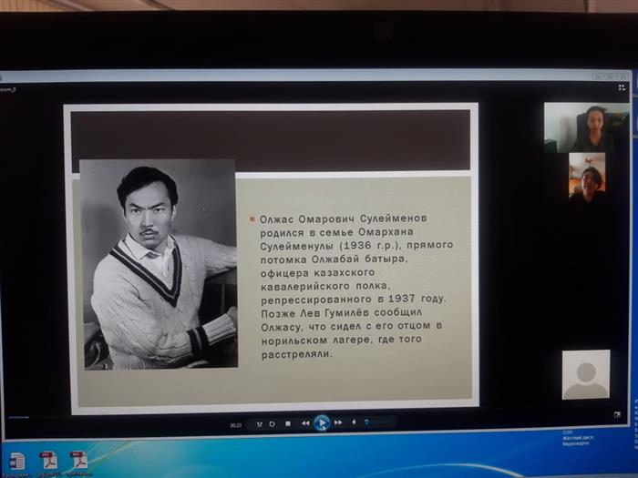 18.05.2021 в 14.00 старший преподаватель кафедры русской филологии Н. Т. Едренова совместно со студентами специальности «Русский язык и литература» провели кураторский час «Олжас Сулейменов. Жизнь и творчество.»