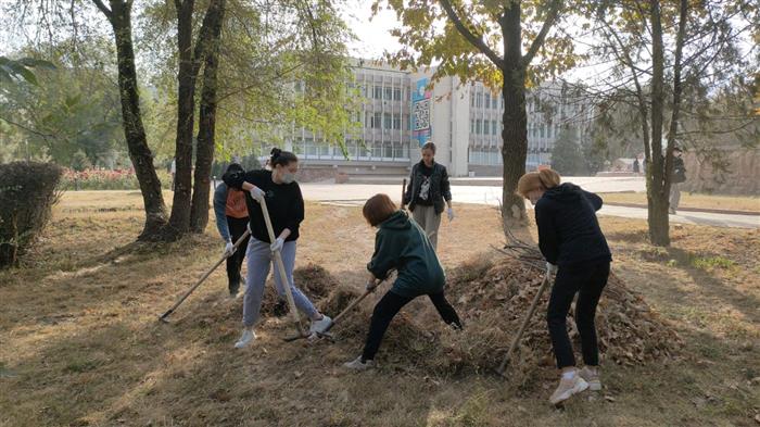 Совместно с коллективом кафедры наши ребята приводили в порядок территорию возле Центра обслуживания студентов «Керемет».