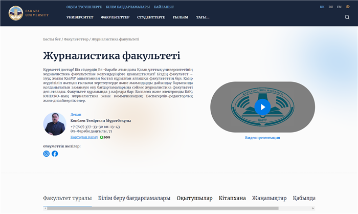 В честь Дня работников средств массовой информации запущен новый веб-сайт Казахского национального университета имени аль-Фараби.