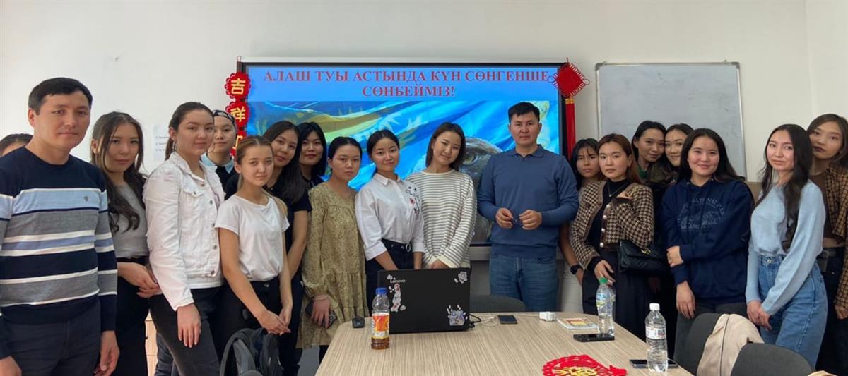 26.10.2022В преддверии праздника «25 октября – День Республики», в целях развития чувства патриотизма и воспитания патриотического духа у студенческой молодежи, 21 октября кафедра китаеведения организовала встречу под названием «Под знаменем Алаша мы не остановимся!».