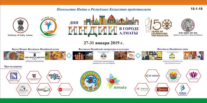 Кафедра Ближнего Востока и Южной Азии факультета Востоковедения совместно с Посольстом Республики Индия в Казахстане приглашает Вас на фестиваль «Дней Индии»» в Алматы с 28 по 31 января 2019 года по случаю празднования 70-го Дня Республики Индии и 150-летия со дня рождения Махатмы Ганди.