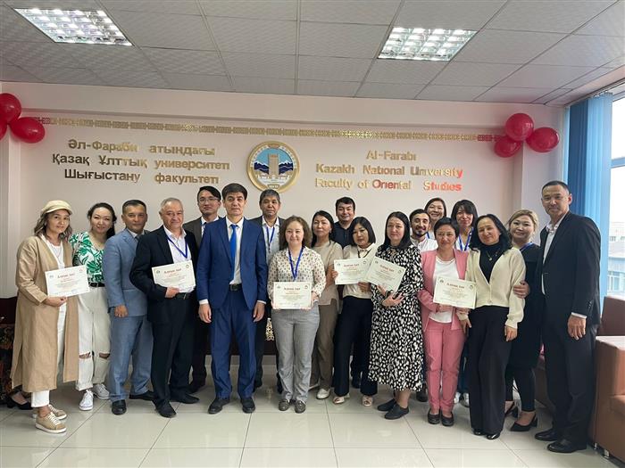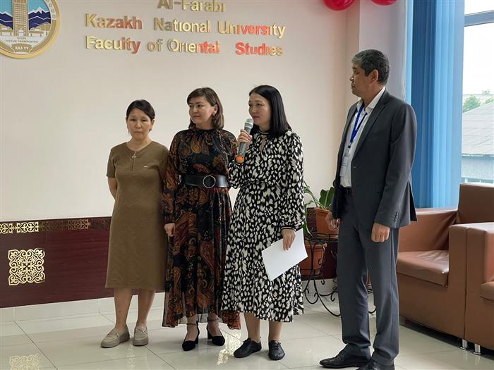 Встреча началась с приветственных слов декана факультета востоковедения Палторе Ыктияра Молдатореулы, далее выступили заместитель декана по учебно-методической и воспитательной работе Амирбекова Умитай Абдыкаппаровна и заместитель декана по научно-инновационной работе и международным связям Джакубаева Салтанат Тулеуовна.