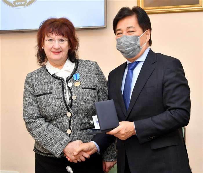 18 декабря в торжественной обстановке в зале приёмов Казахского Национального университета им. аль-Фараби ректор Галимкаир Мутанович Мутанов от имени Президента Республики Казахстан Касым-Жомарта Токаева вручил высокие государственные награды профессорам кафедры международных отношений и мировой экономики: медали «Ерен еңбегі үшін» («За трудовое отличие») проф. Байзаковой Куралай Иртысовне, проф. Губайдуллиной Маре Шаукатовне, и медали «Шапағат» («Милосердие») проф. Кукеевой Фатиме Тураровне, проф. Макашевой Кларе Нальдибековне.