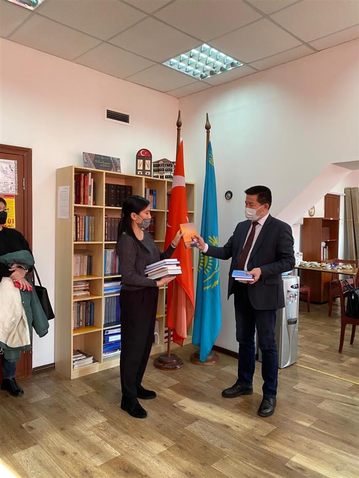 February 2, 2021 The education attaché at the Consulate General of Turkey in Almaty Mr. Mahmud Agyrman donated scientific works and works on the Turkish language and literature, history and culture of Turkey to the library of the Al-Farabi Kazakh National University, the Faculty of Oriental Studies, to the Turksoy department.