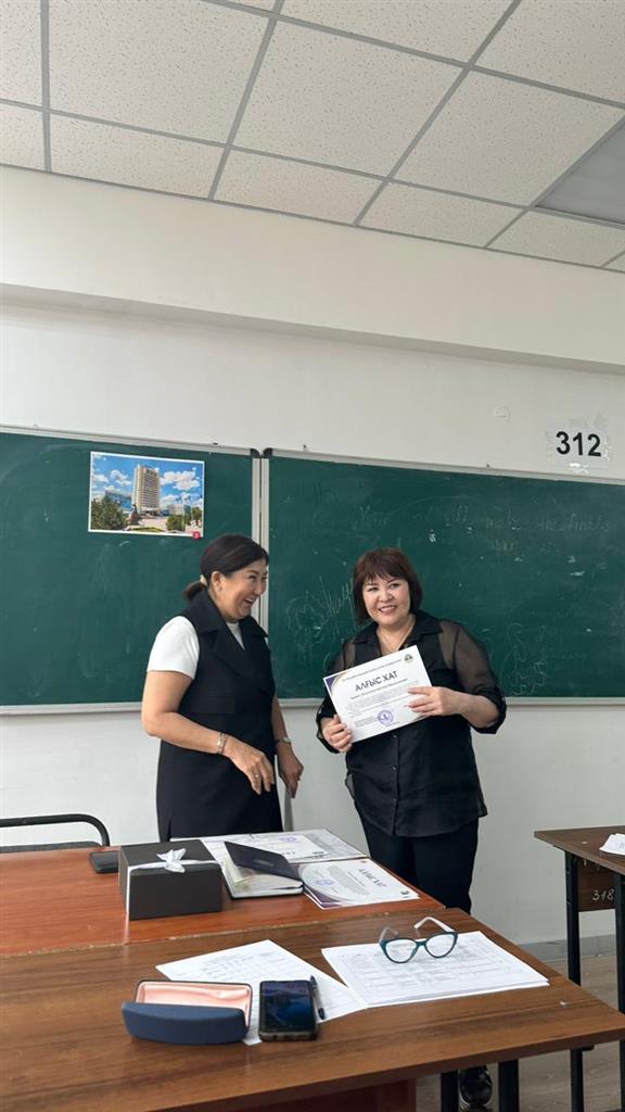 Certificate-awarding ceremony. The director of the TOEFL ITP center, associate professor, candidate of philological sciences A.A. Muldagalieva awarded the teachers the certificates.