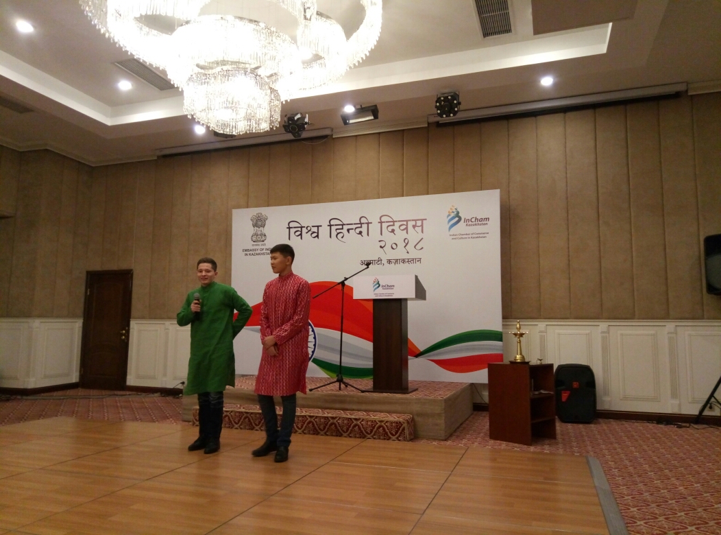 On 28 January 2018 at the Ramada Hotel under the program "Ainalandy nurlandyr" teachers and students of the Indian Studies Department, Middle East and South Asia Chair, Faculty of Oriental Studies together with the Embassy of India to Kazakhstan, and with the Indian Chamber of Commerce and culture held an international Hindi day.