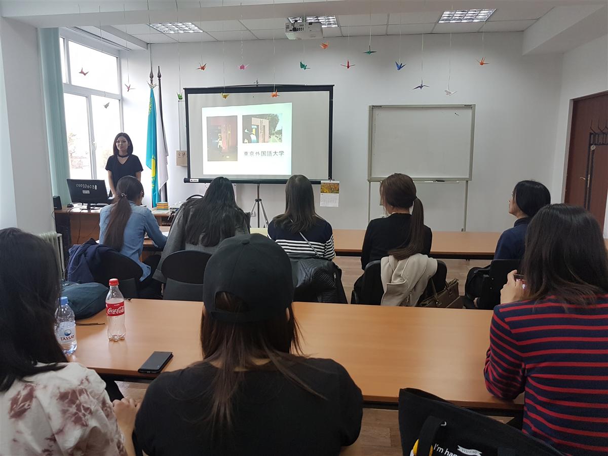 October 25, 2017 at the Department of the Far East Faculty of Oriental Studies KazNU named after al-Farabi, an extended curatorial hour was devoted to the "Experience of academic mobility in Japan", with the participation of the representative of the Japan Foundation, Ms. Onishi Yumi.