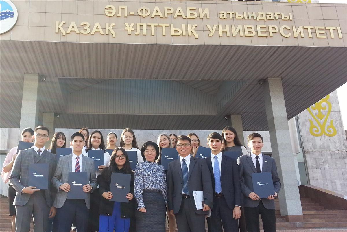 October 26, 2017 in Department of the Far East of the Faculty of Oriental Studies of KazNU named after al-Farabi, a special lecture was conducted on the topic "Difference between cases in Korean and Russian language" by Professor of Khanyang University Ham Ge-Im. A special lecture was held in the online class, which was opened in 2013 with the support of "Korea Foundation" and "Kukmin Bank".