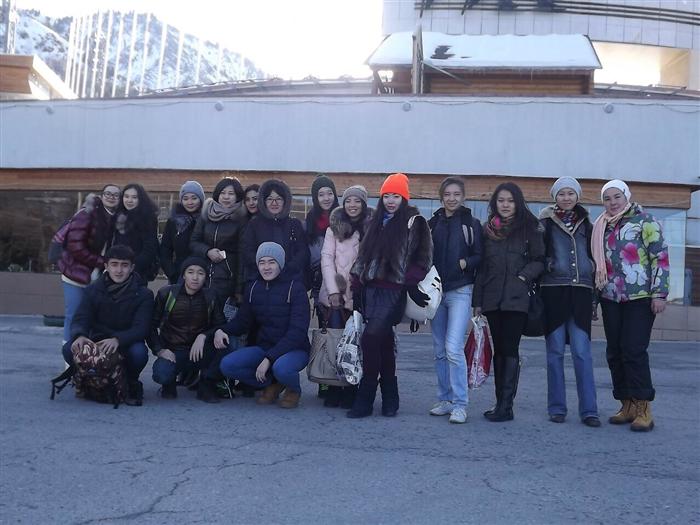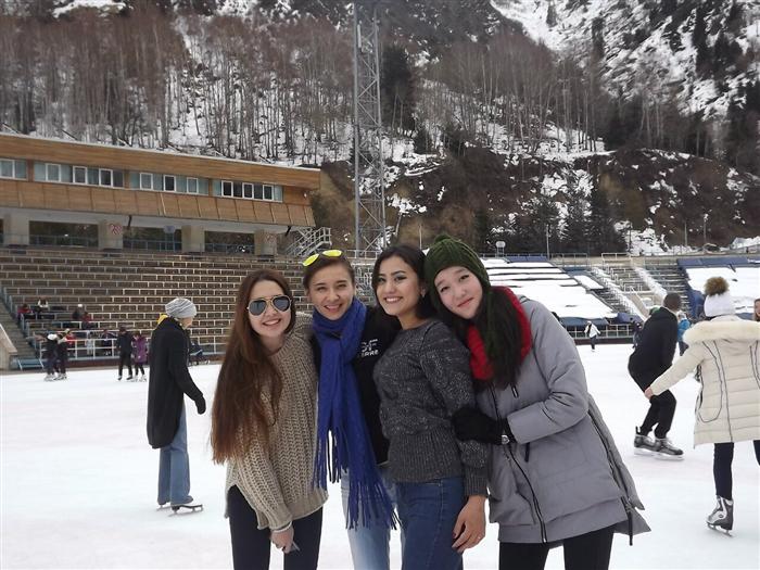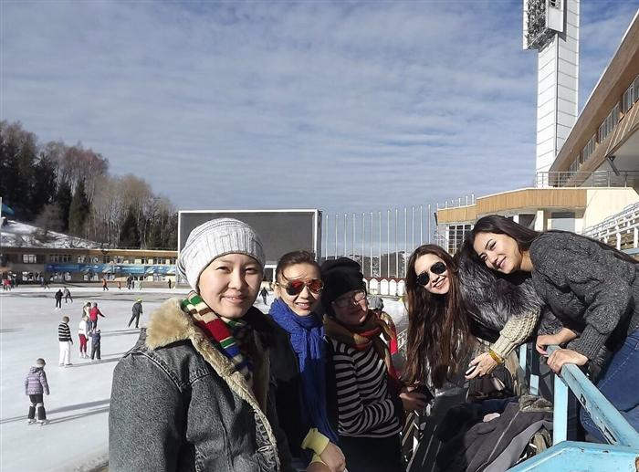 November 28, 2015 in the framework of the project "The cult of healthy body" Zhumadilova G.T. and Shupanova R.E., teachers of the Division of Iranian Studies of the Department of the Middle East and South Asia organized a trip to the skating rink Medeo, which was attended by students of all courses of the Iranian Studies department. This object was chosen to be visited not by chance but because of many students who came from different localities of Kazakhstan and has not yet had the opportunity to see the unique sports complex Medeo built in the mountains at an altitude of 1691 meters above sea level, near the southern capital of Kazakhstan - Almaty. Currently Medeo - the highest range of winter sports with the largest area of artificial ice field - 10,5 thousand square meters. Highlands contributes to the establishment of records. For all the time here 170 world records have been set.