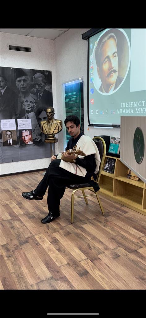 On the basis of the project" Sustainable Development Goals (Tsur) " (partnerships towards achieving the goal Today, 11/09/2023, the day of the people's poet and great thinker of Pakistan, Muhammad Iqbal, was celebrated at the department of the Middle East and South Asia Department of the Faculty of Oriental Studies. Iqbal's contribution to the revival of Islamic culture and spirituality is truly immeasurable. A great poet and thinker who pioneered the new Muslim renaissance in the early 20th century, he is today considered the "spiritual leader" of Pakistan. Members of the language club of the Quasar Urdu Society recited Iqbal's poems and shared his biography. The main objective of the event was to broaden the thinking of the youth through the works of Allama Iqbal. At the end of the event, teachers and students took photographs with the PIR Consul, Mr. Muhammad Farooq, and exchanged warm greetings.