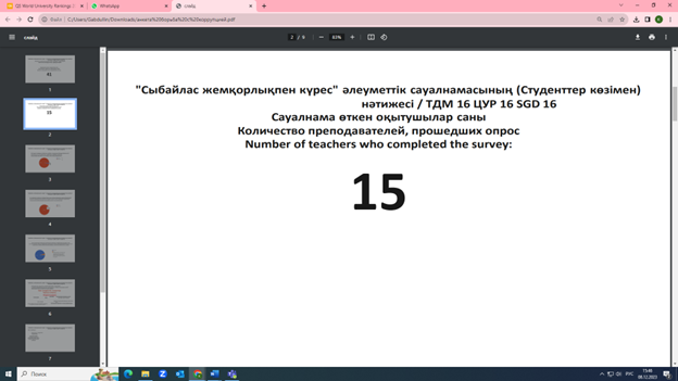 Result of the sociological survey "Fighting Corruption" within Sustainable development in the Department of Turksoy