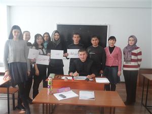On December 5, 2014 the Student scientific club “Arab world” of the Department of Arabic and Iranian Studies of the Faculty of Oriental Studies within the framework of the social and innovative project “Aynalandy nurlandyr!” hold a master class in Arabic calligraphy with Master of the Studios of Arabic calligraphy Asylbek Urynbasarov.