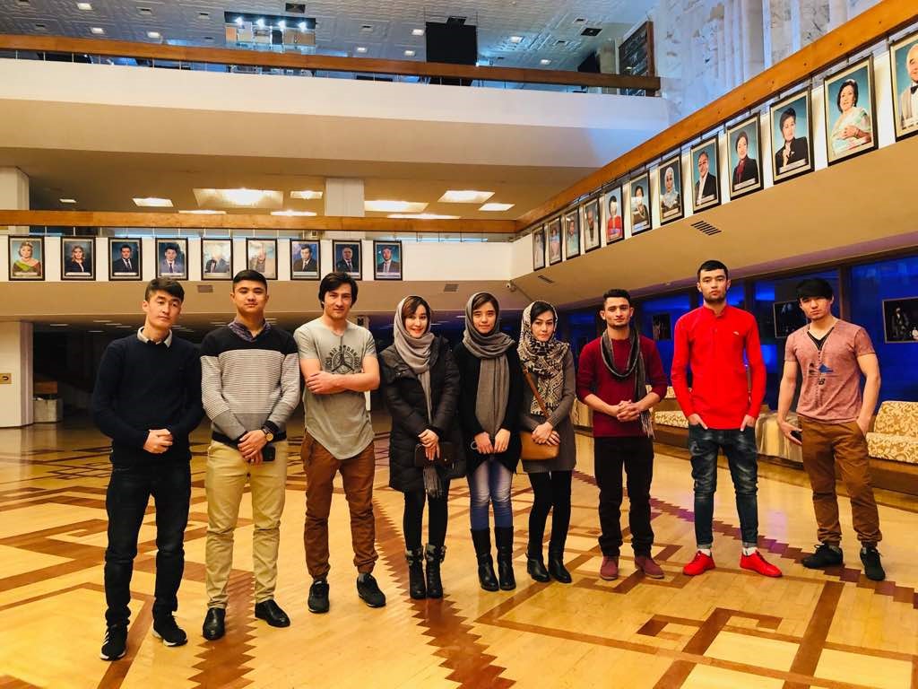 At the 2nd of December of 2018 Students of 2nd group of pre-university faculty of Al-Farabi Kazakh National University with their teacher Nursulu Matbek went to the Auezov Theater (Kazakh State Academic Drama Theater named after M.O. Auezov) and watched spectacle of «Тендерге түскен келіншек»