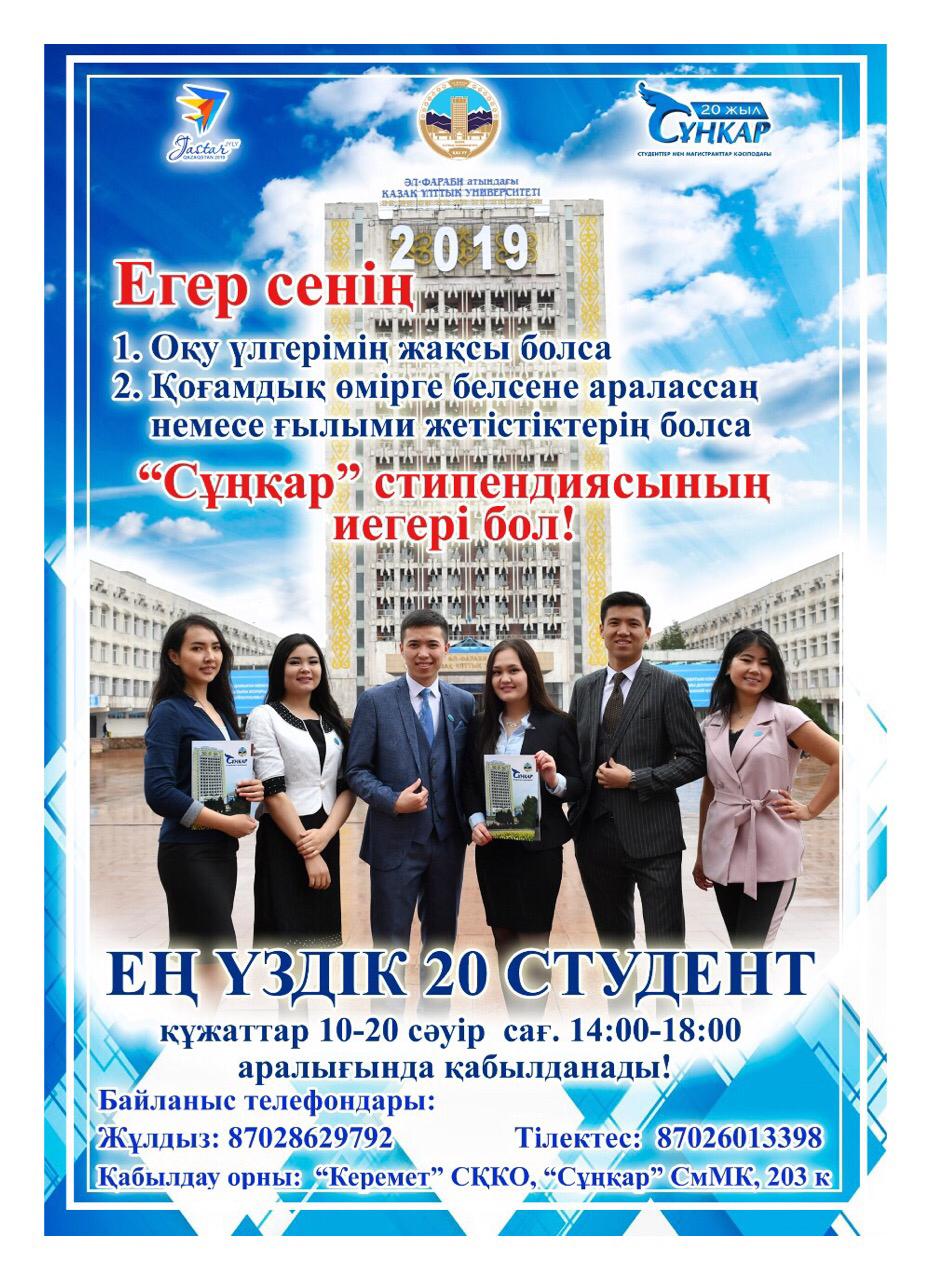Attention to students❗ In connection with the 20th anniversary of the Trade Union of Students and Undergraduates "Sunkar", scholarship "Sunkar" In honor of the 20th anniversary of the scholarship of 20 students.
