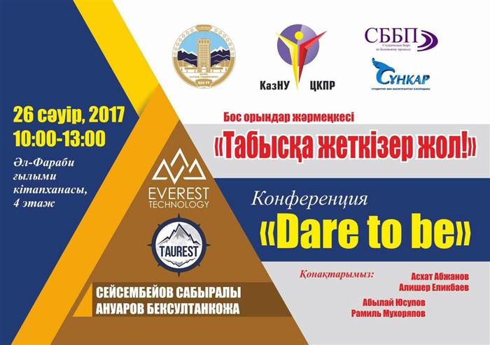 Success». As part of the Job Fair, it is planned to hold a «Dare to be» conference with the participation of Abylay Yusupov, Ramil Mukhoryatov, Abzhan Askhat, Elikbaev Alisher.