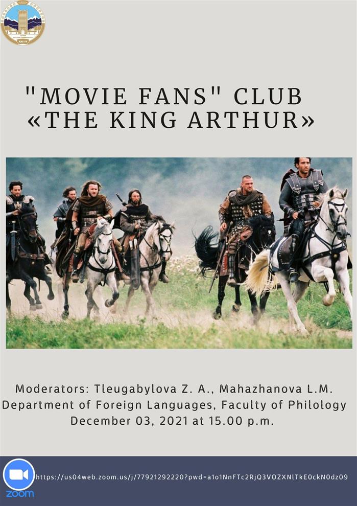 Within the framework of the project "Rukhani Zhangyru", the heads of the "Movie Fans" club, senior teachers of the Department of Foreign Languages, Tleugabylova Z.A. and Makhazhanova L.M. on December 3, 2021, held an on-line discussion of the film "King Arthur". The discussion of the film was held according to the club's plan among 1st year students.