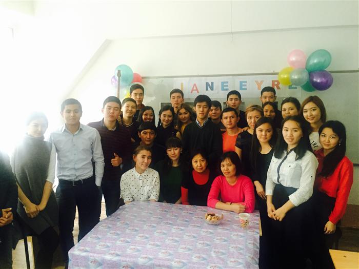 03.11.2015., at 12.40, room 218, Ph.D. B.N. Akshalova and Senior teacher G.B. Almabaeva with first-year students, specialty- Logistics, showed a scene of childhood of Jane Eyre on the subject of the novel «Jane Eyre» by Sh.Bronte, within the framework of the project «100-Kitap».