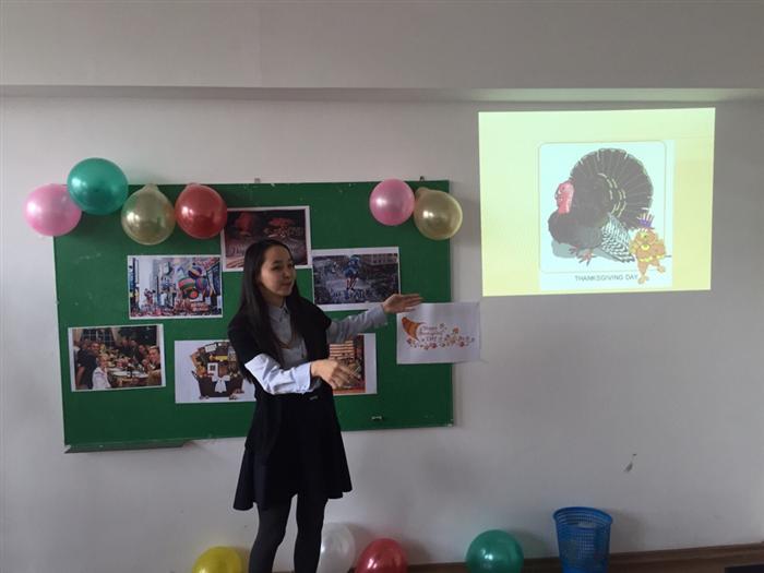 On the 2. 12.2015 was held celebration of «Thanksgiving Day» within the framework of the club «English through culture». The 1st course students of the law faculty took part in this celebration of the holiday. The aim of this party was to give learn some traditions, customs and symbols of this holiday and develop students speaking skills and enlarge world outlook through English language.