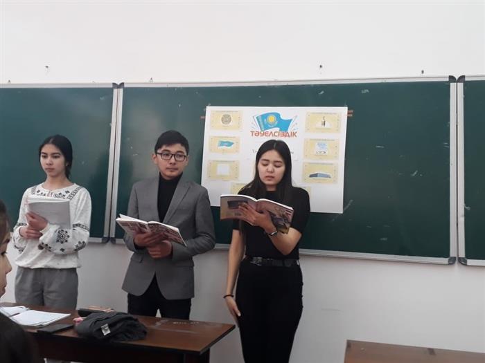 On the 10th December students of “Ecology” specialty celebrated the “Independence Day of Kazakhstan”. They demonstrated they made slide-show presentation which proved their profound knowledge of history of Kazakhstan and their language skills of English and their mother tongue was checked with the help of puzzles and interactive games where they had to give definitions to a hidden famous person of Kazakhstan.