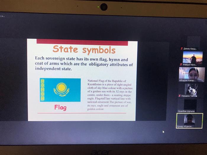 December 9, 2020 teachers of the Department of Foreign Languages Myrzakhmet M.Zh. and Zhirenshina G.A. on the eve of Independence Day, an educational event "Great holiday - Independence Day" was held on the Zoom platform with first-year students of the Faculty of Philosophy and Political Science.