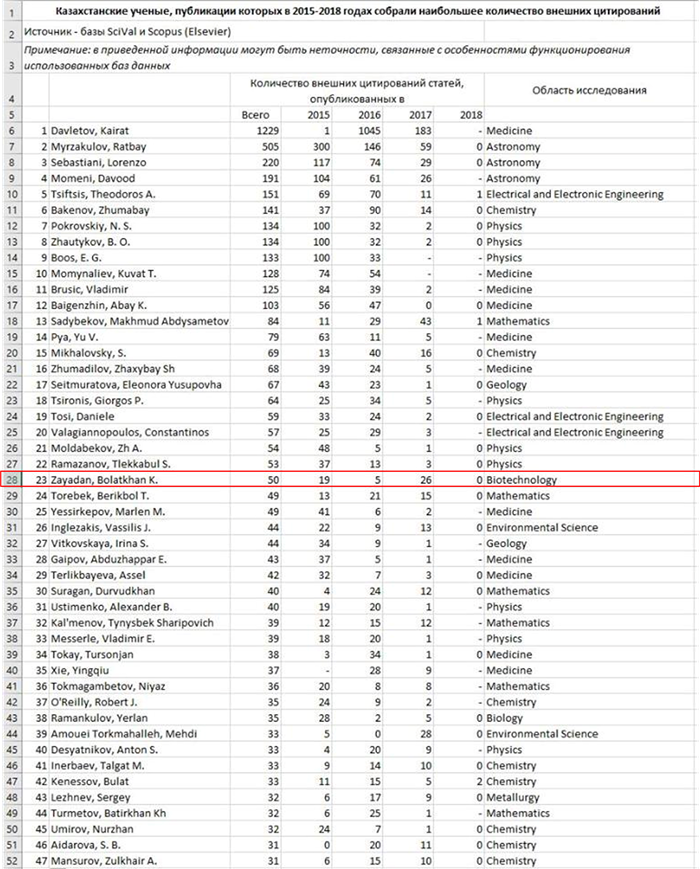 Doctor of Biological Sciences, Professor, academician of the NAS of RK Zayadan Bolatkhan Kazykhanuly included in the list of the most cited scientists of Kazakhstan, congratulations! |