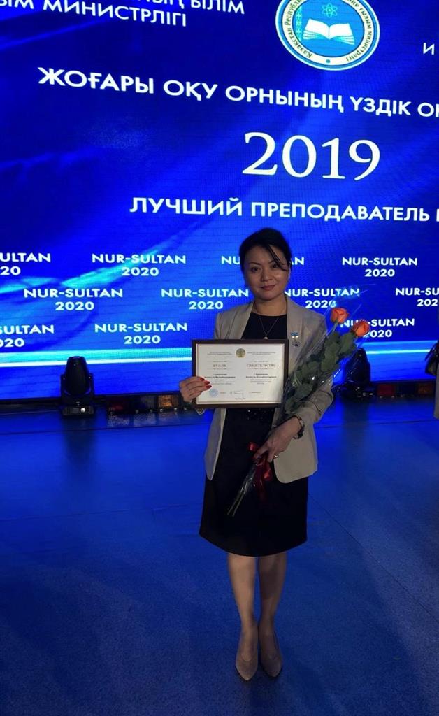 Candidate of Biological Sciences, Associate Professor L.K. Baktybaeva The owner of the title "The Best University Teacher" for 2018 |