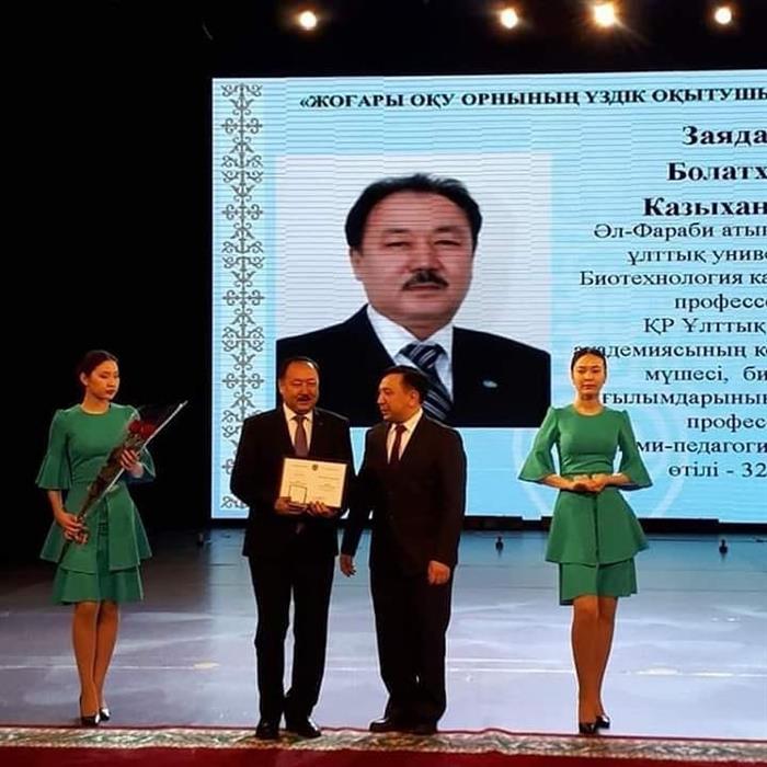 Doctor of Biological Sciences, Professor Bolatkhan Kazykhanovich Zayadan was awarded the prize "The Best Teacher of the University" - 2018 |