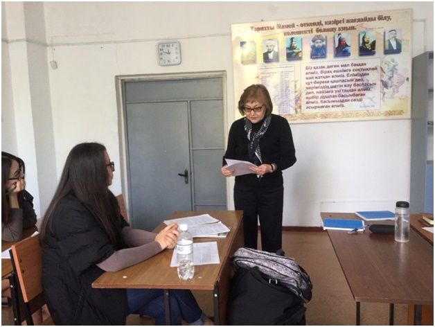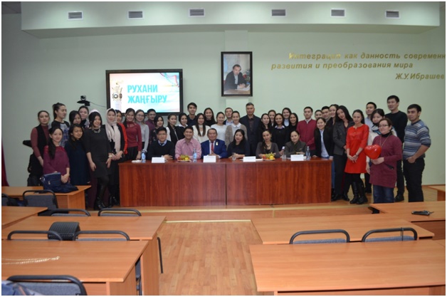 Professor O.Kh.Aymaganbetova and Associate Professor Z.M.Sadvakasov introduced the 1st year students with the biography and views of Alikhan Bukeikhanov - the son and leader of the Great Steppe. |