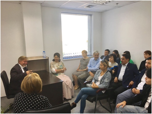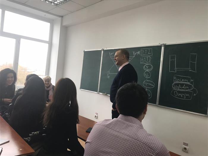 Educational event within the framework of the project "Ainalalod nurlandyr". Meeting with the President of the International Academy of Psychological Sciences, Doctor of Psychology, Professor, famous psychologist V. Kozlov. Location: psychological center, Baytursynova 101, corner of Toe bi, 6th floor, 601 office. Organizers: D.Sc., prof. O. Kh. Aimaganbetova, senior lecturer Adilova E.T. There were teachers, undergraduates, students of the OPS of KazNU and other universities in Almaty. |