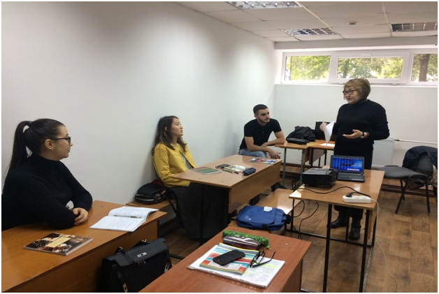 On October 11, 2018, within the framework of Project " Brighten around ", an educational event with international participation with а colleague from France Nina Ryckewaert, a Doctor of Psychology, a Neuropsychologist of the Department of adult Poly-disability Association Cazin-Perrochaud, was held in the form of a round table on the topic: «Psychological volunteers in various institutions: features of work and problems». This event is addressed to students of helping specialties of the Faculty of Philosophy and Political Science of the Al-Farabi KazNU The roundtable was attended by students of psychology 1 st, 2 nd, 4 th course, teachers of the department, a graduate-employer Maul Tatiana, is the Director of the Center for Rehabilitation of Human Bioplasma. The following questions were discussed at the round table: where (in which institutions, organizations) and in what form psychology students can help as volunteers. It is known that a volunteer is a person voluntarily engaged in socially useful activities free of charge. He helps the elderly, people with disabilities, children with special educational needs, families and individuals in difficult life situations. In particular, our guest Nina Ryckewaert told about the help that psychology volunteers can provide in France. Next, a graduate of the specialty "Psychology", and now the employer Tatiana Maul told about work of the Center and offered to cooperate with the Department of General and Applied Psychology, with volunteers. In conclusion, the students were asked to create an association (union) of faculty volunteers and begin practical work, help. Organizer-moderator: Acting Professor of the Department of General and Applied Psychology – Kabakova M.P.