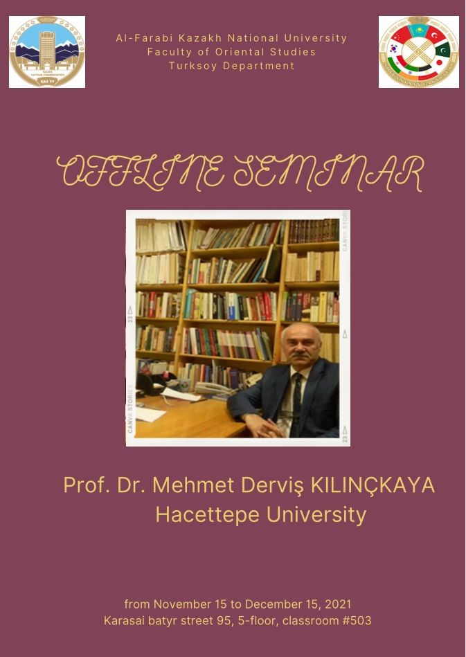 One-month 72-hour seminar has begun at the Faculty of Oriental Studies, the Turksoy Department. The lessons will be held in a traditional format. The lecturers of the seminar is esteemed Prof. Dr. Mehmet Derviş KILINÇKAYA (Hacettepe University). At the end of the seminar, a certificate will be issued. Date from November 15th to December 15th, 2021, address 95 Karasai Batyr Str., 5th floor, room 503.