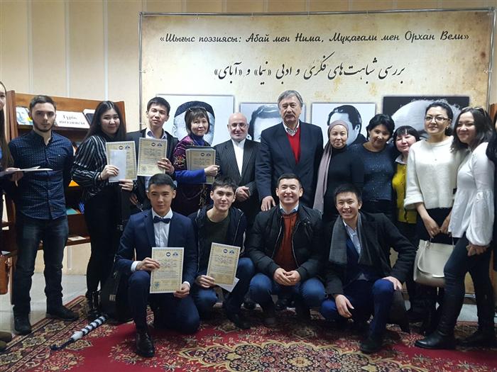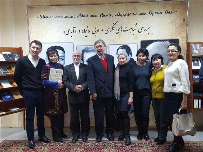 On February 21, 2018, at 14.00, an international poetry evening was held "Oriental poetry: Abay and Nima, Mukagali and Orkhan Veli", organized by the TURKSOY scientific and educational center of KazNU named after al-Farabi, the Central Scientific Library of RSE "Gylym Ordasy" MES RK, the cultural center of the Islamic Republic of Iran in the RK. At the evening, Professor Islam Zhemenei spoke about the similarities of the Persian poet Nima and the great Abai. Senior teacher deputy. Chair of the Turkic Faculty of Oriental Studies Zhenis Abeldaev made a report on the life and work of Orkhan Veli Kanyk, which takes its place in the Turkish literature of the 20th century. Students of Almaty Universities will take part in the evening and read the poems of these great poets. The students of the specialty Turkish language and literature read excellent translated versions of Kazakh poets Abai and Mukagali into Turkish and Tatar languages. At the end of the evening, students were awarded cash prizes for poetry readings.