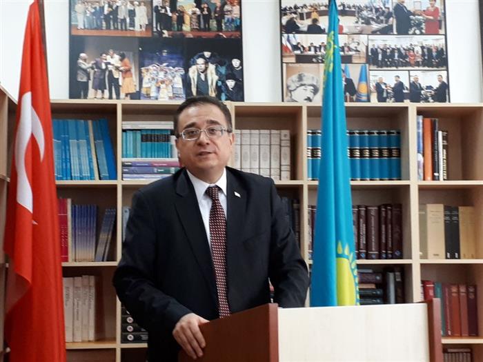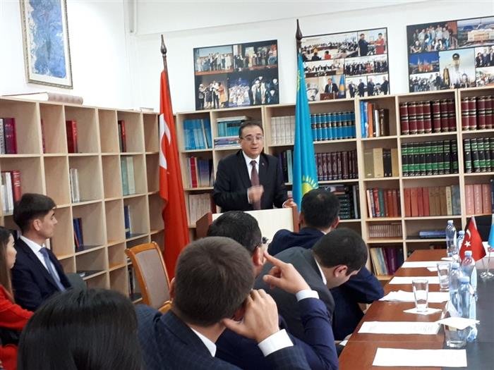 The first day of the week has begun with the consul's congratulation. The chief consul of Embassy of the Republic of Turkey in Almaty Yrza Kagan has read the lecture "Turkey and Kazakhstan in One Friendly Ship" for students 1-4 courses of faculty of Oriental studies of department of TÜRKSOY and has answered to different questions.