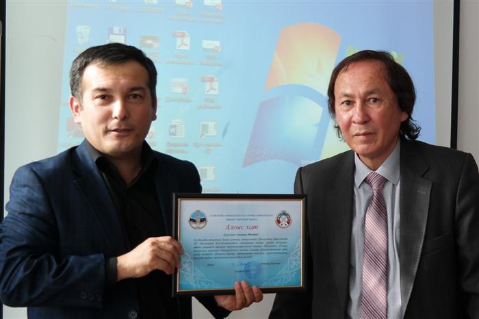 At the end of the seminar an Appreciation Letter was handed over to Prof. Amankos Mektep by the Head of Turksoy department Kydyr Toreali.